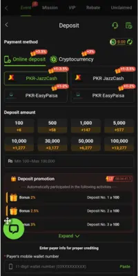 | Withdrawal Options | Jazz Cash, Easy Paisa |